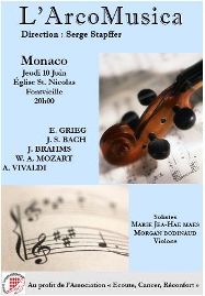 Un concert donné par l’ensemble à cordes ArcoMusica sous la direction de Serge Stapffer au profit de l’association « Ecoute Cancer Réconfort » a eu lieu jeudi 10 juin 2010 à 20h00 en l’Eglise Saint-Nicolas de Fontvieille.
