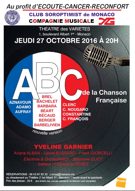 At 8.00 p.m. on Thursday 27th October there will be an evening of music for the benefit of the association at The “Théâtre des Variétés de Monaco”.