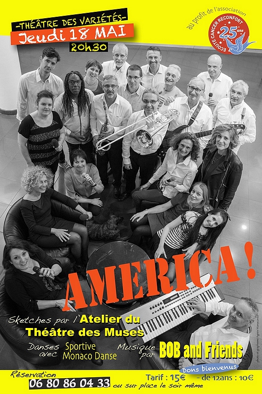 Le jeudi 18 mai 2017 aura lieu le spectacle “America” au profit d’Ecoute Cancer Réconfort. Prix des places 15€
